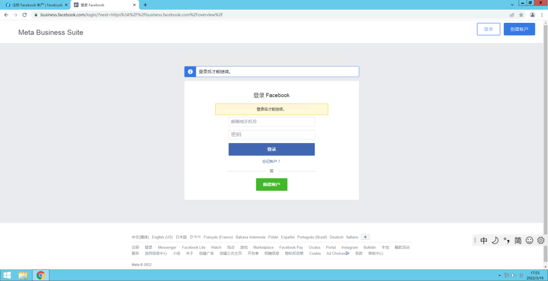 一、Facebook养号准备一个可以正常登录使用的邮箱和手机号,进入Facebook主页,根据页面要求,填写相关信息,点击注册。